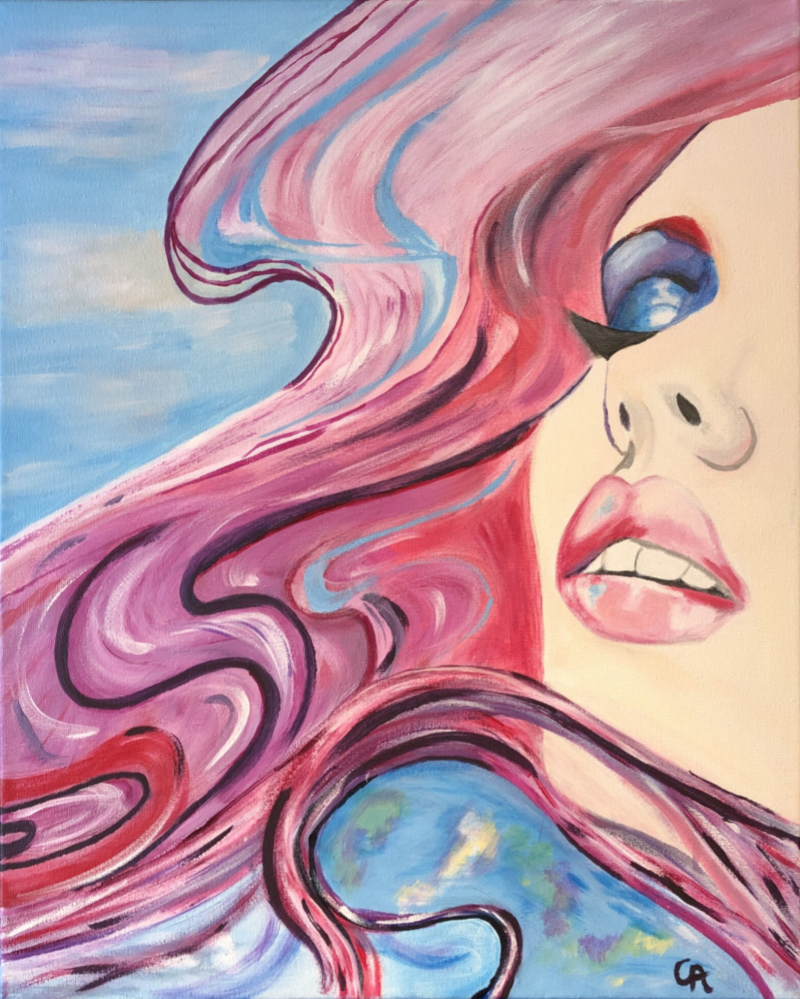 Meisje met de wapperende haren, 50 x 70 cm, acryl